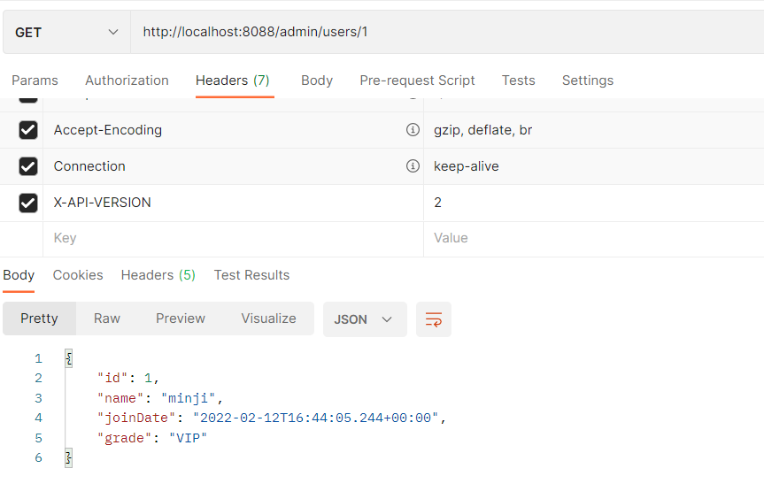http://localhost:8088/admin/users/1/?version=1 ๋ฐฉ์์ผ๋ก ํธ์ถ
