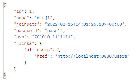 - WebMvcLinkBuilder : ์ ์ ๊ฐ์ฒด๋ฅผ ๋ฐํ์ํฌ ๋ ์ ์ ๊ฐ ์ฌ์ฉํ ์ ์๋ ์ถ๊ฐ์ ์ธ ์ ๋ณด(๋งํฌ)๋ฅผ hypermedia ํ์์ผ๋ก ๋ฃ์ด๋๋๋ค.