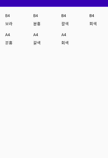 adapter.addItem(new ListItem("A4", "๋ณด๋ผ"));