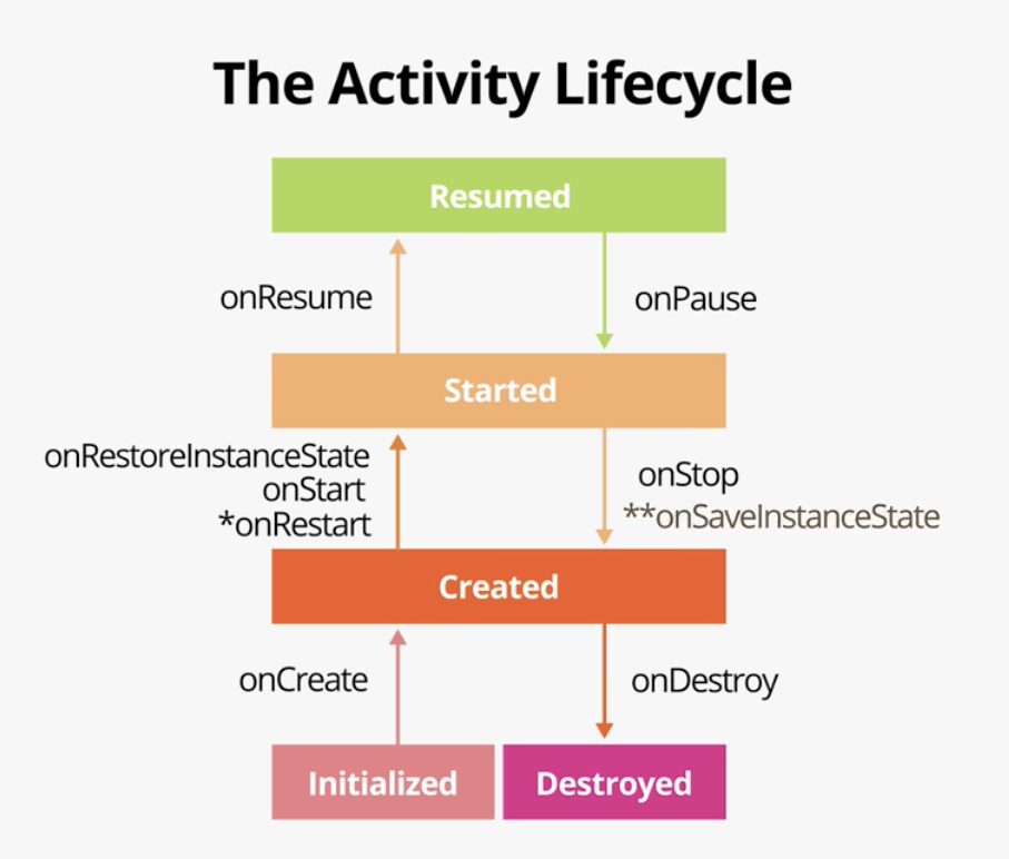 - ํ๋ฉด์ด ํ์ ํ ๋๋ onCreate()์ onDestroy()๊ฐ ๋ค์ ๋ถ๋ฆฌ๊ธฐ ๋๋ฌธ์ ์ค์ ํด๋ ๋ณ์ ๊ฐ์ด ๋ชจ๋ ์ด๊ธฐํ๋๋๋ฐ, savedInstanceState๋ฅผ ์ด์ฉํด์ onDestroy() ์ ์ ๋ฐ์ดํฐ๋ฅผ ์ ์ฅํ๊ณ , ์ด ๋ฐ์ดํฐ๋ฅผ onCreate()์์ ๋ค์ ๋ถ๋ฌ์ค๋ ํ์์ผ๋ก ์ฌ์ฉํ๋ค.