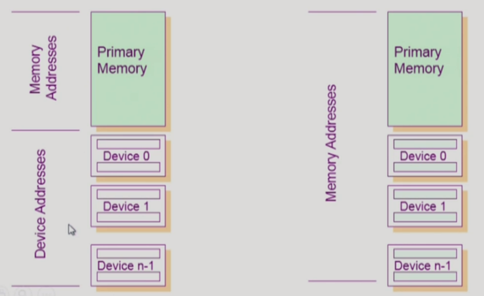 2) I/O ์ฅ์น์ memory ์ฐ์ฅ ์ฃผ์๋ฅผ ๋งค๊น -> ํ๋์ memory-mapped instruction ์ฌ์ฉ(memory-mapped I/O)