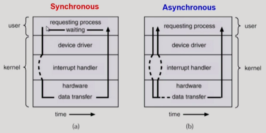 - I/O๊ฐ ์์๋ ํ ์ ์ถ๋ ฅ ์์ ์ด ๋๋๊ธฐ๋ฅผ ๊ธฐ๋ค๋ฆฌ์ง ์๊ณ ์ ์ด๊ฐ ์ฌ์ฉ์ ํ๋ก๊ทธ๋จ์ ์ฆ์ ๋์ด๊ฐ