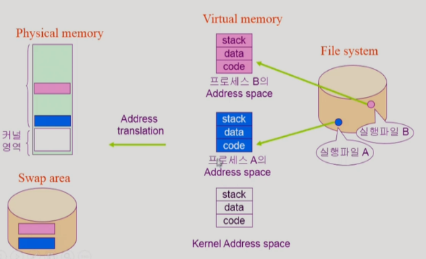 - ์ฌ์ฉ์ ์ฃผ์ ๊ณต๊ฐ์ ๋ฌผ๋ฆฌ์ ๋ฉ๋ชจ๋ฆฌ๊ฐ ์๋๋ผ virtual memory๋ผ๊ณ ๋ถ๋ฅธ๋ค.