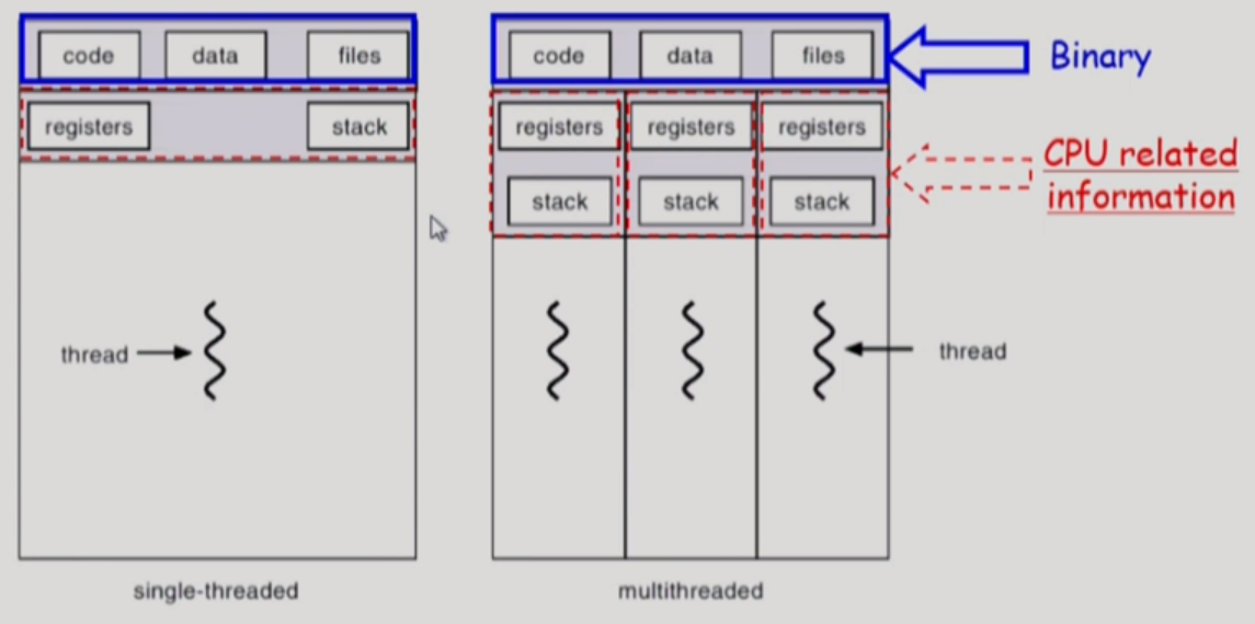 - thread๊ฐ ์ฌ๋ฌ ๊ฐ ์๋ค๋ ๊ฒ์ system์ด ์๊ณ ์์ -> system์ด thread ๊ด๋ฆฌ