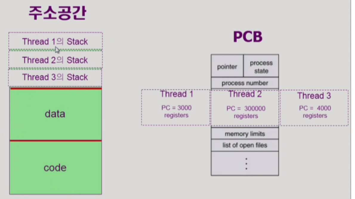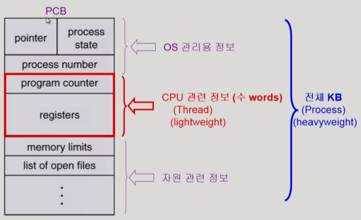 - thread๊ฐ ์ฌ๋ฌ ๊ฐ ์๋ค๋ ๊ฒ์ system์ด ์๊ณ ์์ -> system์ด thread ๊ด๋ฆฌ
