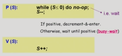 1) P์ฐ์ฐ : ๊ณต์ ์์์ ํ๋ํ๋ ๊ณผ์ (lock์ ๊ฑฐ๋ ๊ณผ์ ) -> busy-waiting ๋ฌธ์ ๊ฐ ๋ฐ์!