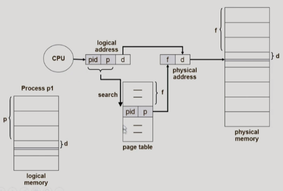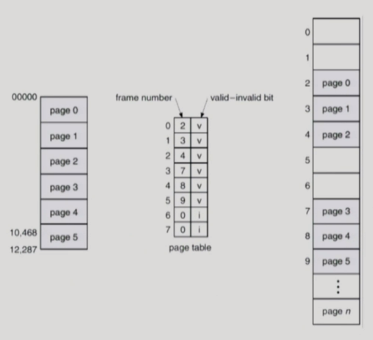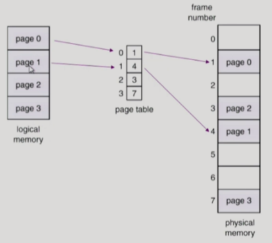 - page table์ ํตํด logical addr(page) -> physical addr(frame)๋ก ๋ณํ
