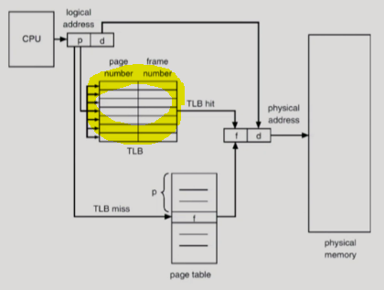 -> ์๋ ํฅ์์ ์ํด associative register, ์ฆ TLB๋ผ๋ ์บ์๋ฅผ ์ฌ์ฉ