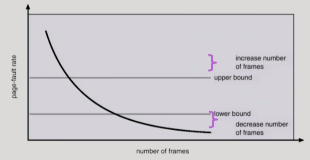 ์ง์ page-fault rate๋ฅผ ๋ณด๊ณ frame ํ ๋น