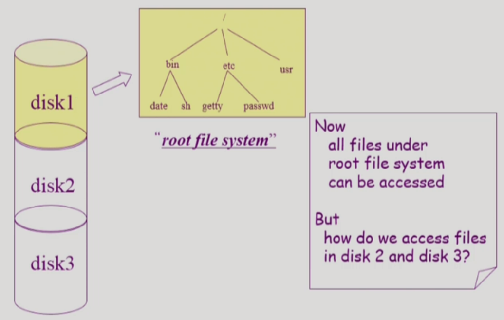 -> ๋ค๋ฅธ file system์ root directory์ ๋ฐ๋ก ์ ๊ทผ ๊ฐ๋ฅ
