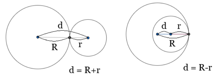else if (distance == (r1+r2) || distance == (r1-r2))