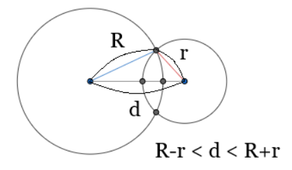 // 01. ๊ต์ 2๊ฐ( R-r < d < R+r )