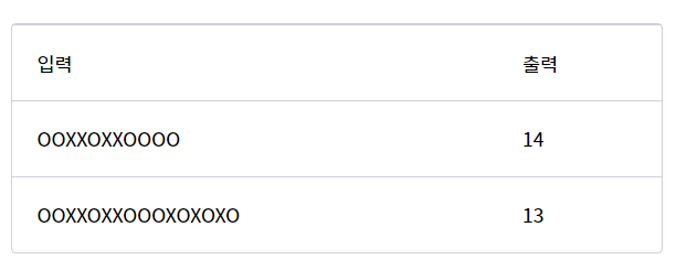 'O'์ด ๋์ฌ ๋๋ง๋ค cnt๋ฅผ ์ฆ๊ฐ์ํค๊ณ ํด๋น cnt๋ฅผ total์ ๋ํด์ฃผ๋ฉด ๋๋ค.